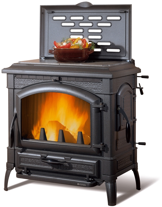 Kvalitní celolitinová kamna ve smaltu s plotnou.