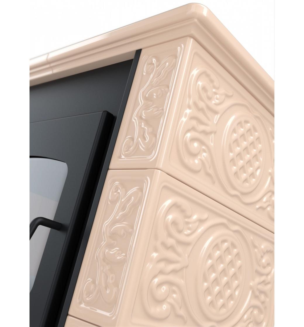 Kachlová kamna Bali jsou navíc obložena pravými, ručně vyráběnými kachlemi. Design kachlí byl speciálně vykreslen našimi designéry a nese název "zpovědnice". Kachle jsou akumulačním materiálem a z toho důvodu se akumulační schopnost kamen značně navyšuje.