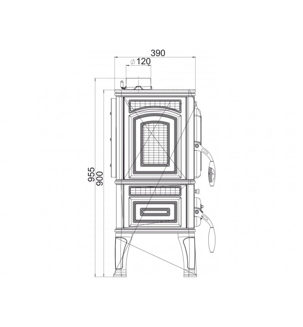 Rozměry dvířek topeniště (š x v): 340 x 286 mm