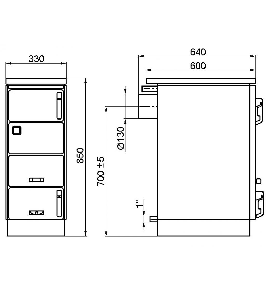 - Napojení na komínu pouze ze zadní stěny otvorem o průměru 130 mm
