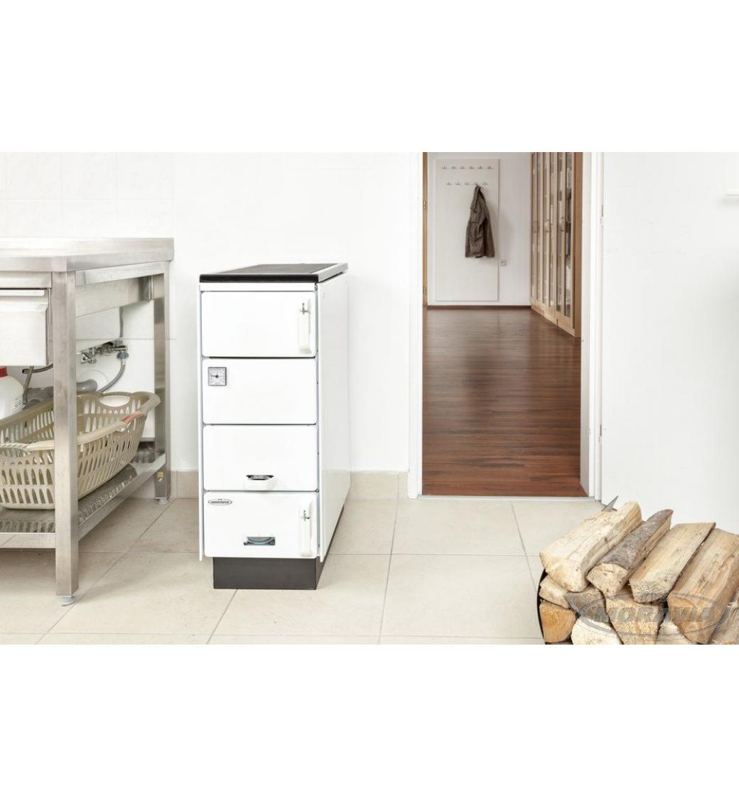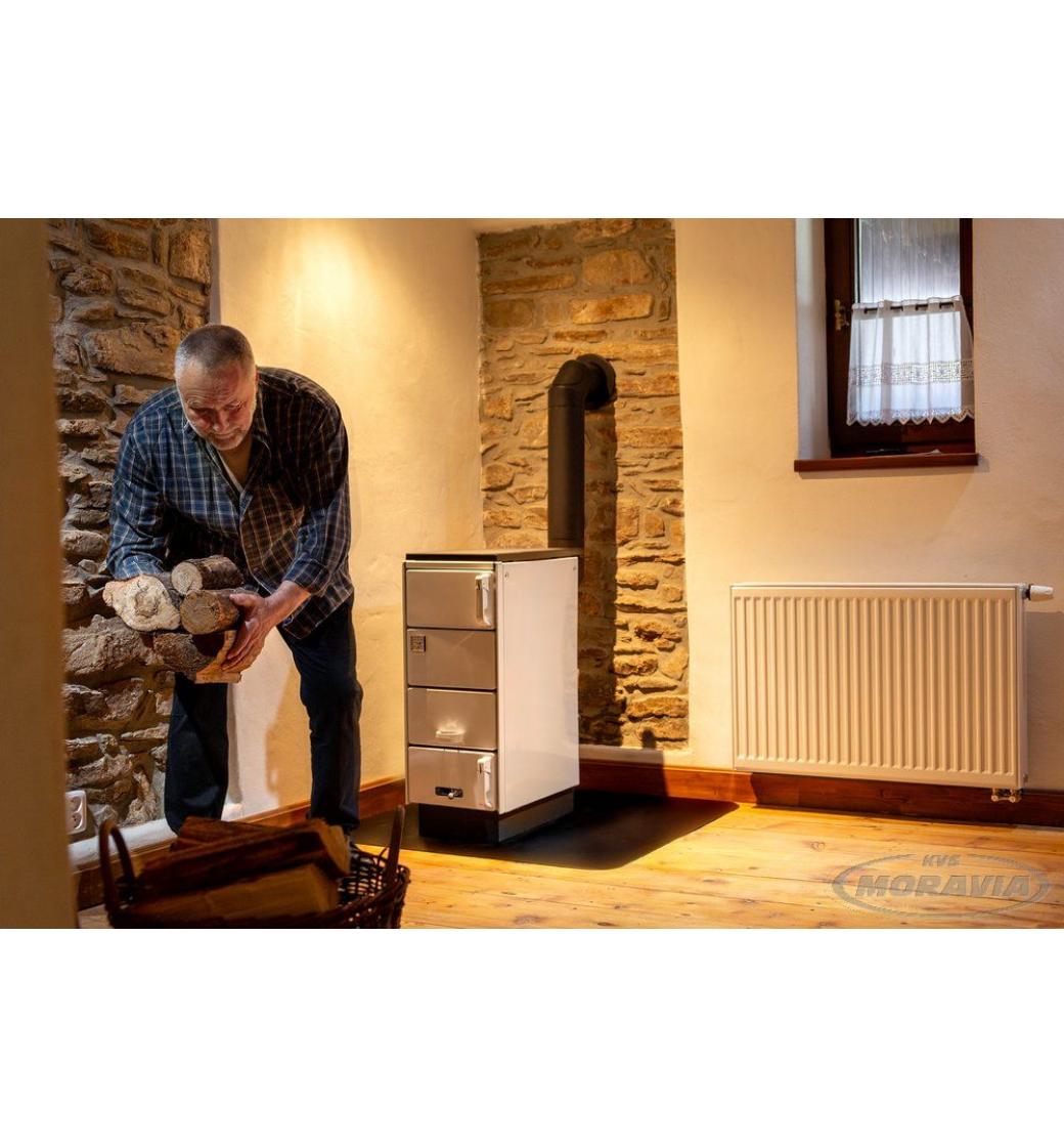 Varný spotřebič s výměníkem KVS MORAVIA typ 9106 je konstruován na spalování pevného paliva, jako jsou dřevo a dřevené brikety.