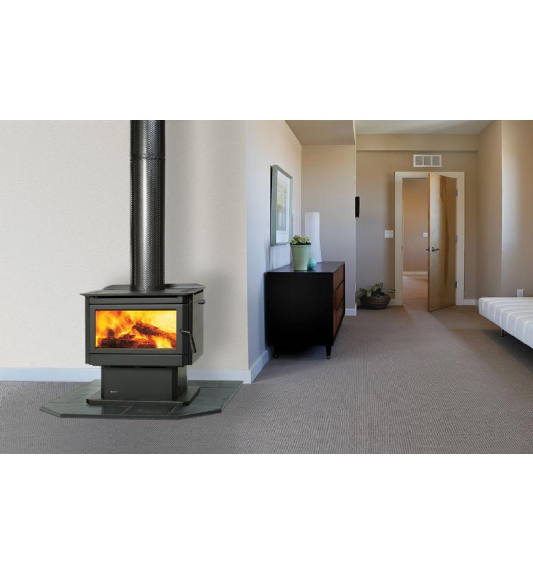 Krbová kamna F180 mají moderní design a velké sklo umožňuje úžasný pohled na oheň. Tato krbová kamna jsou určena pro  vytápění středně velkých obytných prostor.
