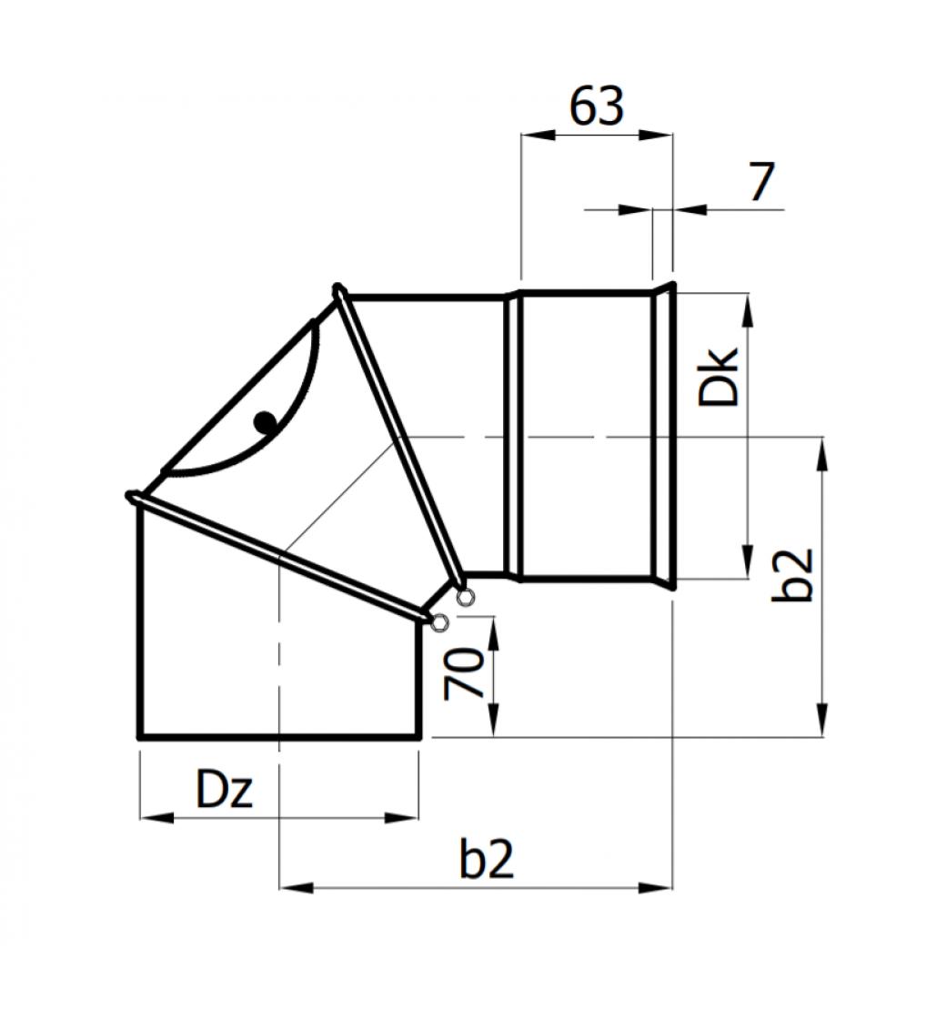 Koleno nerez 1mm - nastavitelné 90* 150mm s čistícím otvorem