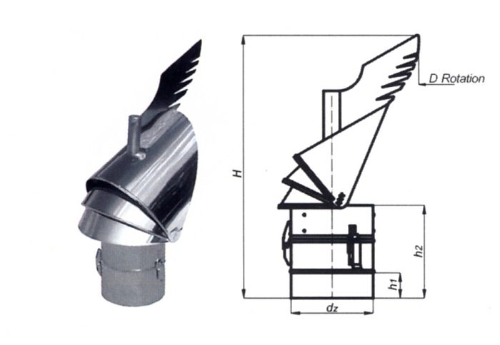 - Ke každé hlavici dodáváme dva vzhledově odlišné směrovky, které hlavici otáčejí ve směru větru.