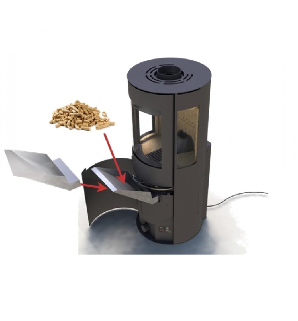 Během večera můžete ovšem topit standardně dřevem, vychutnat si sklenku vína a pokochat se pohledem na krásné atraktivní plameny. Spalování pelet se automaticky zastaví, jakmile vnitřní systém změří teplotu spalování, kterou vyhodnotí jako spalování dřeva.