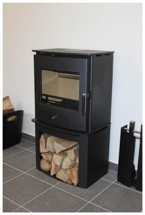 Označení D znamená kamna s dřevníkem / podstavcem, kde si pohodlně uschováte palivo, či jiné pomůcky a vše budete mít vždy po ruce.