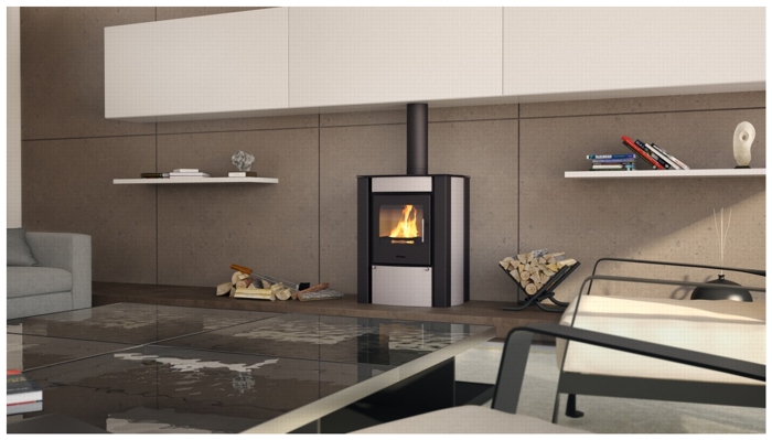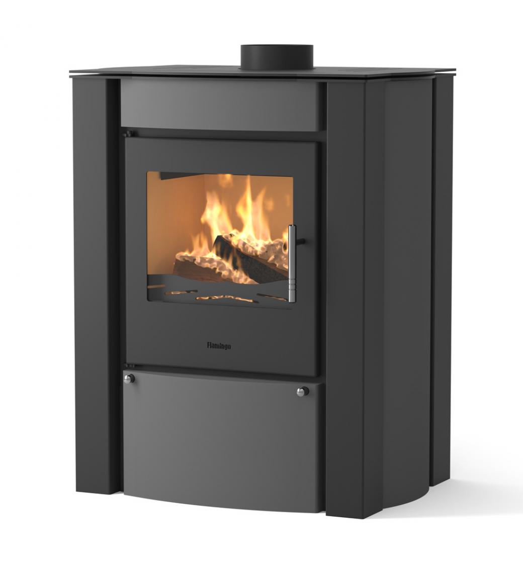 Detailní popis Krbová kamna FLAMINGO ® AMOS šedá