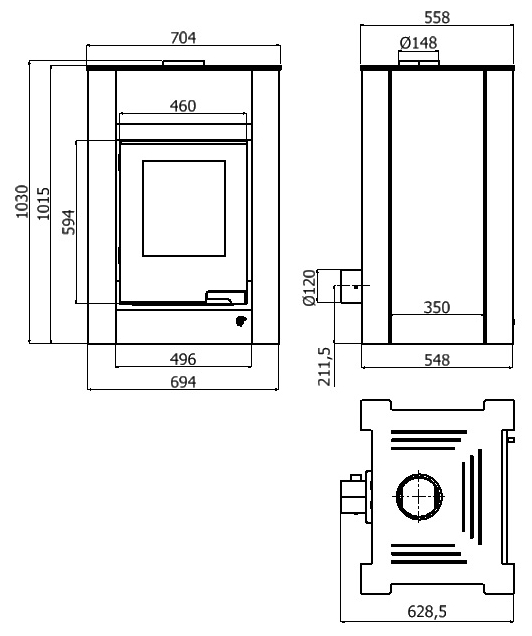 | Materiál: | ocelový plech 3 a 5 mm, šamot |