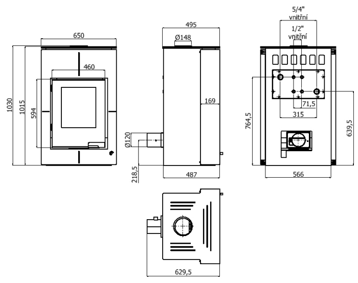 - Typ kamen teplovodní, dvouplášťová, konvekční