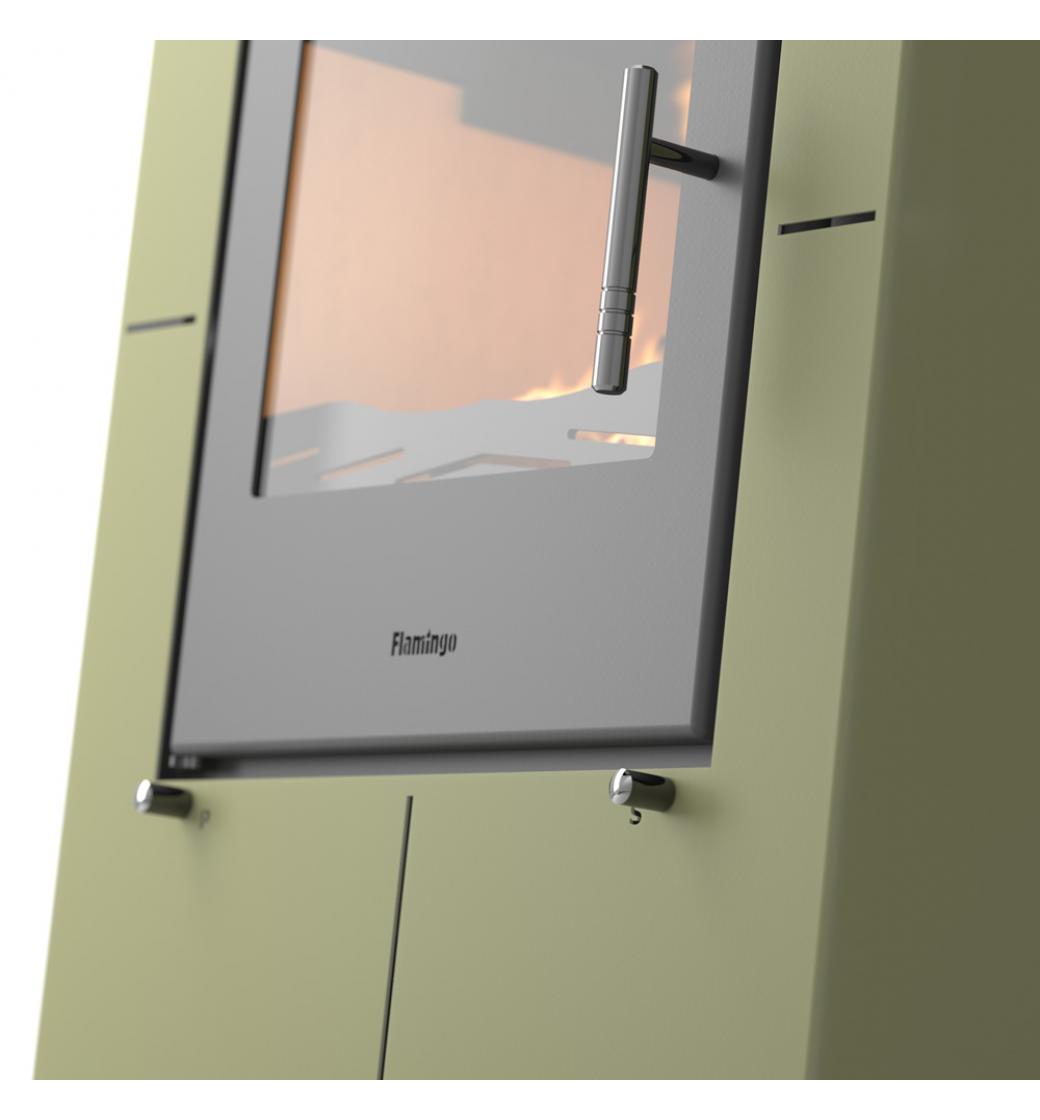 Detailní popis Krbová kamna FLAMINGO ® EVENES olivová
