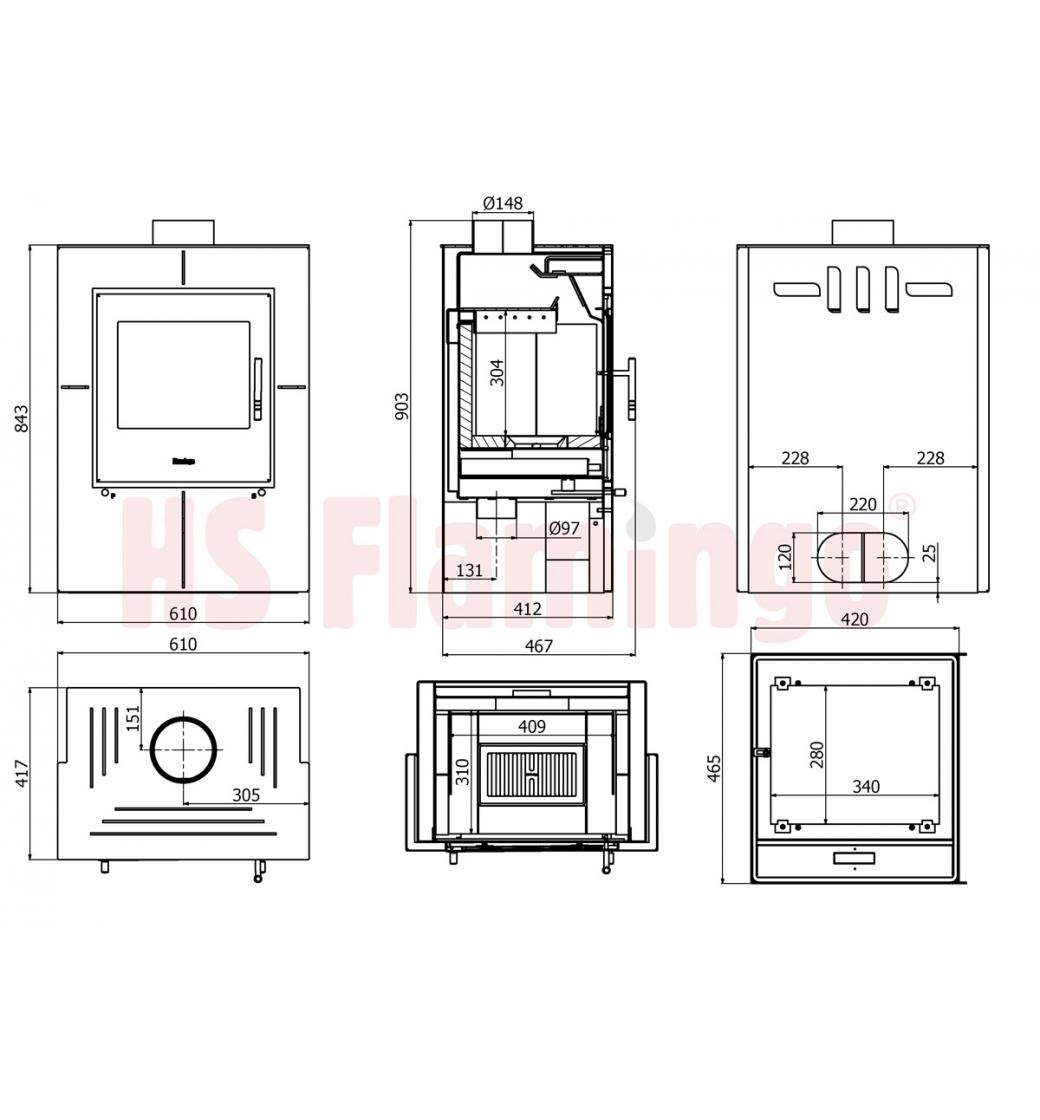 | Rozměr topeniště (Š x V x H): | 405 x 280 x 310 mm |