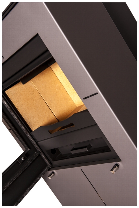 Šamot je základem pro vysokou účinnost a nízkou spotřebu paliva. Zajišťuje vysoké teploty ve spalovací komoře.