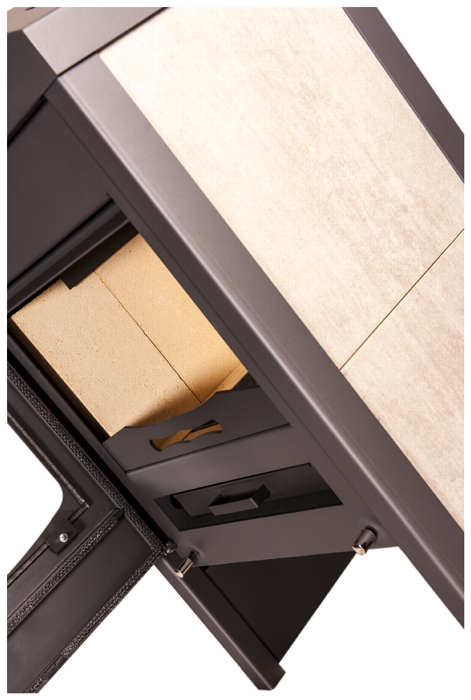 Šamot je základem pro vysokou účinnost a nízkou spotřebu paliva. Zajišťuje vysoké teploty ve spalovací komoře.