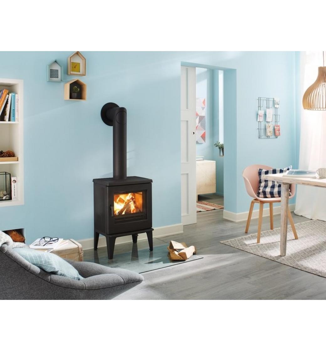 Kompaktní kvalitní litinová kamna od německého výrobce Leda vynikají masivní konstrukcí a velkým prosklením. Dokonalé spalování a pohodlné přikládání velkými dvířky zvyšuje komfort užívání. Povrchová úprava je černý matný lak. Nespornou výhodou je i možnost připojení přívodu vzduchu z exteriéru ovládání vzduchu jedním šoupákem a možnost horního či zadního odkouření.