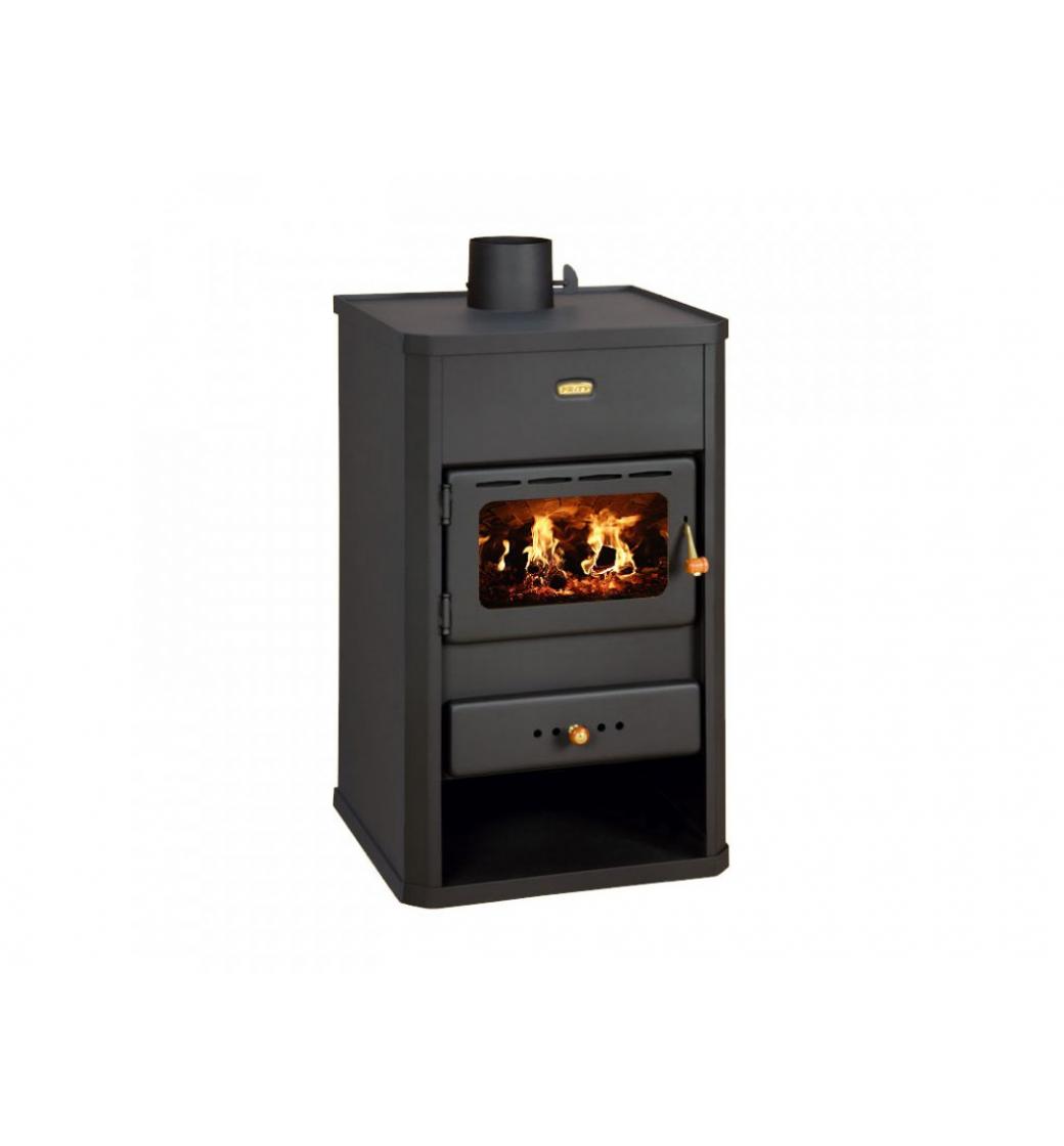 Praktická a výkonná krbová kamna. Jsou vyložena šamotovými deskami, součástí je litinový rošt.