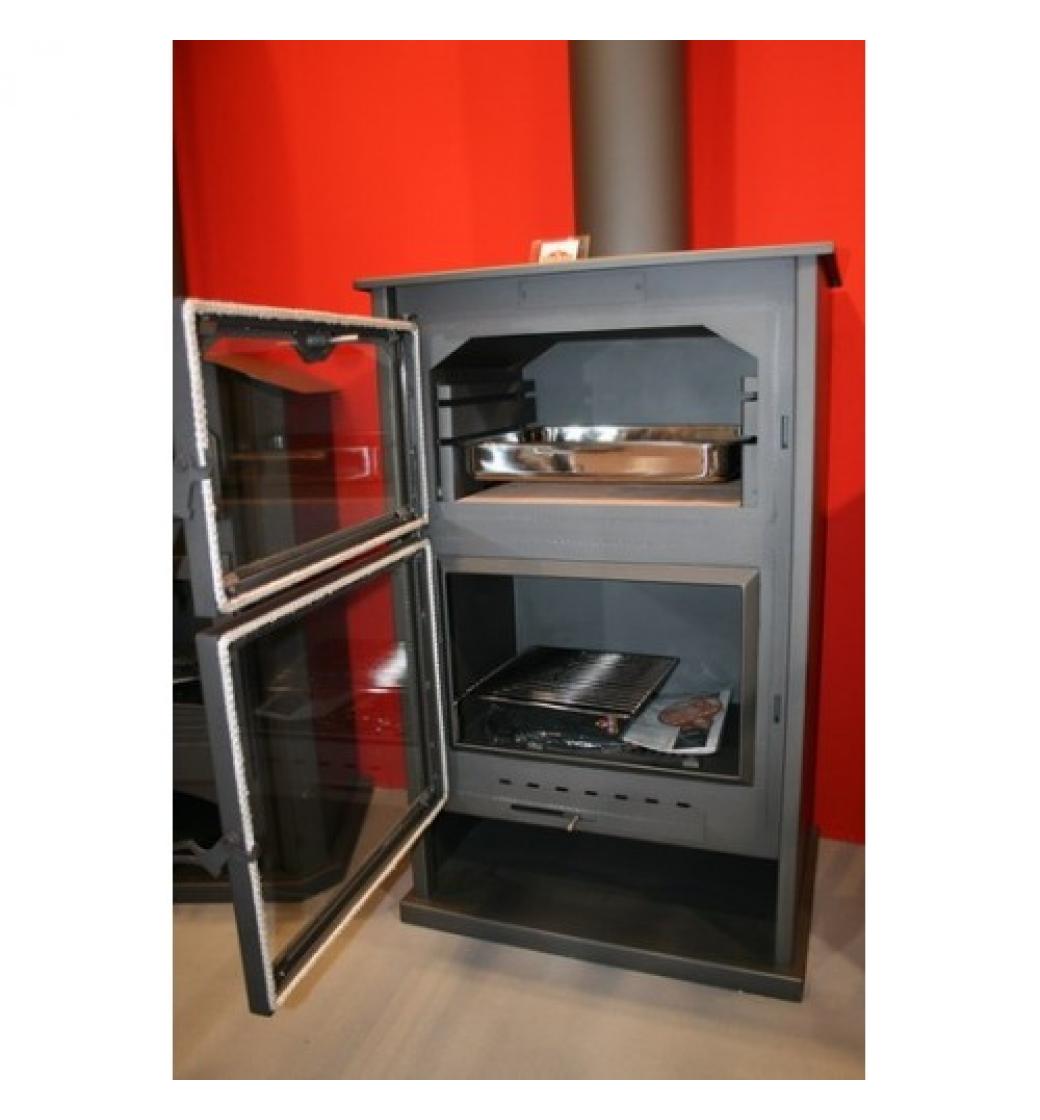 Vysoce kvalitní krbová kamna s troubou od španělského výrobce kamen a krbů Bronpi. Krbová kamna Bronpi Suiza mají litinový rošt, popelník, prostorné topeniště ocelové bez šamotových tvarovek, úložný prostor ve spodní části kamen,velká trouba s teploměrem na pečení a ohřívání jídla.