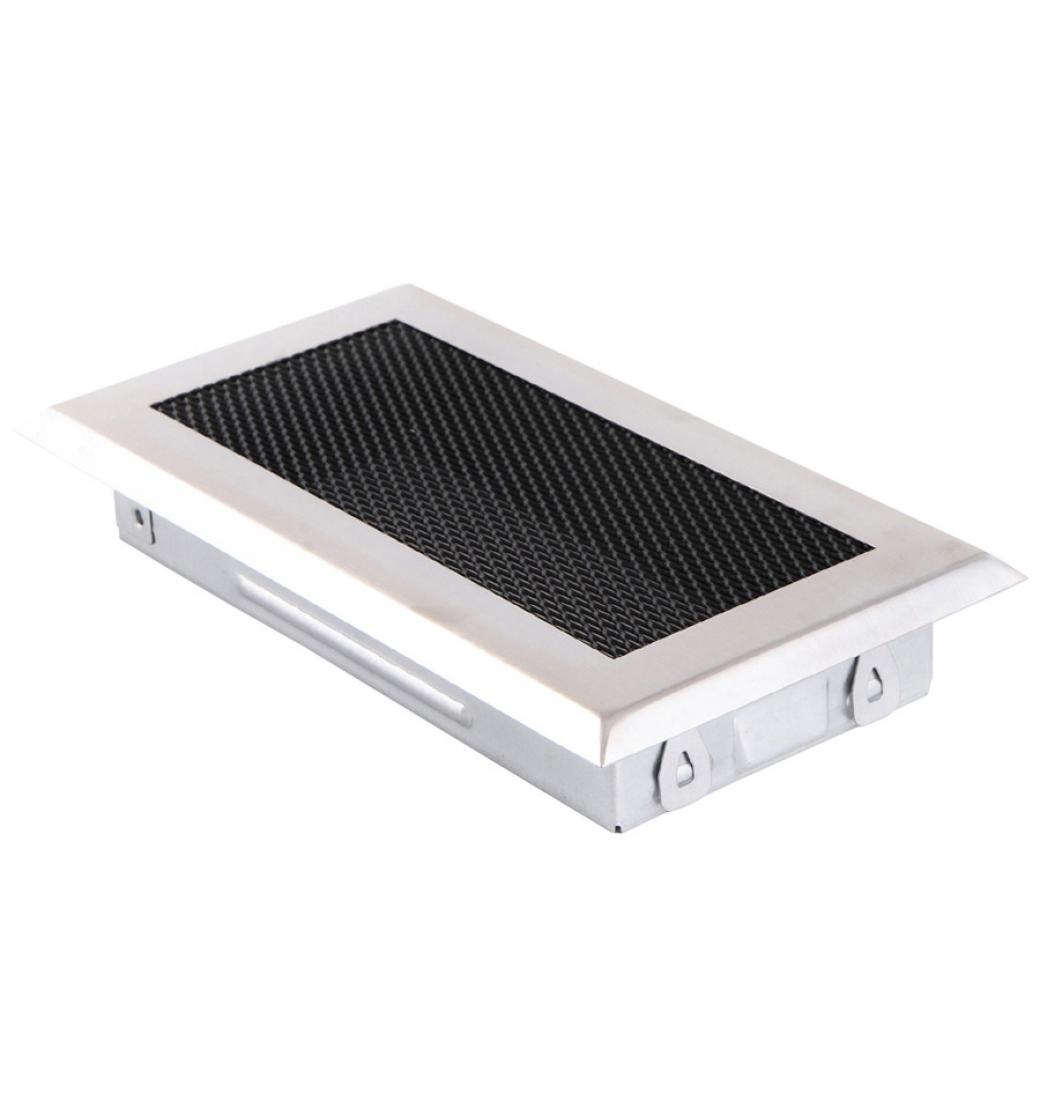 Ventilační mřížky různých rozměrů a v několika barvách. Ocelové s montážním rámečkem, lakované práškovou barvou vysoké kvality, která je odolná vůči vysokým teplotám. I po několikaletém provozu zachovává svůj původní lesk a odstín. Mřížky plní též funkci dekorační. Slouží ke clonění ventilačních otvorů. Jsou vyrobeny z ocelových částí a příslušně upraveny technologickým procesem. Tento typ mřížek je určen pro montáže do komínových sopouchů, stěn a podlah (nepoužívat na stropech).Krbové mřížky - hranaté