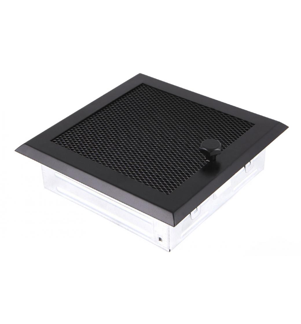 Ventilační mřížky různých rozměrů a v několika barvách. Ocelové s montážním rámečkem, lakované práškovou barvou vysoké kvality, která je odolná vůči vysokým teplotám. I po několikaletém provozu zachovává svůj původní lesk a odstín. Mřížky plní též funkci dekorační. Slouží ke clonění ventilačních otvorů. Jsou vyrobeny z ocelových částí a příslušně upraveny technologickým procesem. Tento typ mřížek je určen pro montáže do komínových sopouchů, stěn a podlah (nepoužívat na stropech).Krbové mřížky - hranaté