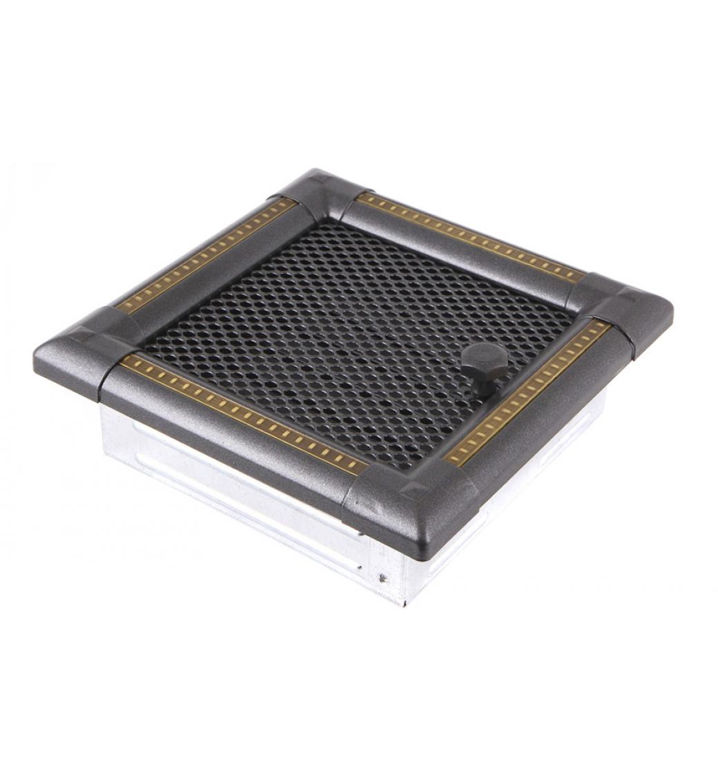 Ventilační mřížky různých rozměrů a v několika barvách. Ocelové s montážním rámečkem, lakované práškovou barvou vysoké kvality, která je odolná vůči vysokým teplotám. I po několikaletém provozu zachovává svůj původní lesk a odstín. Mřížky plní též funkci dekorační. Slouží ke clonění ventilačních otvorů. Jsou vyrobeny z ocelových částí a příslušně upraveny technologickým procesem. Tento typ mřížek je určen pro montáže do komínových sopouchů, stěn a podlah (nepoužívat na stropech).Krbové mřížky - hranaté
