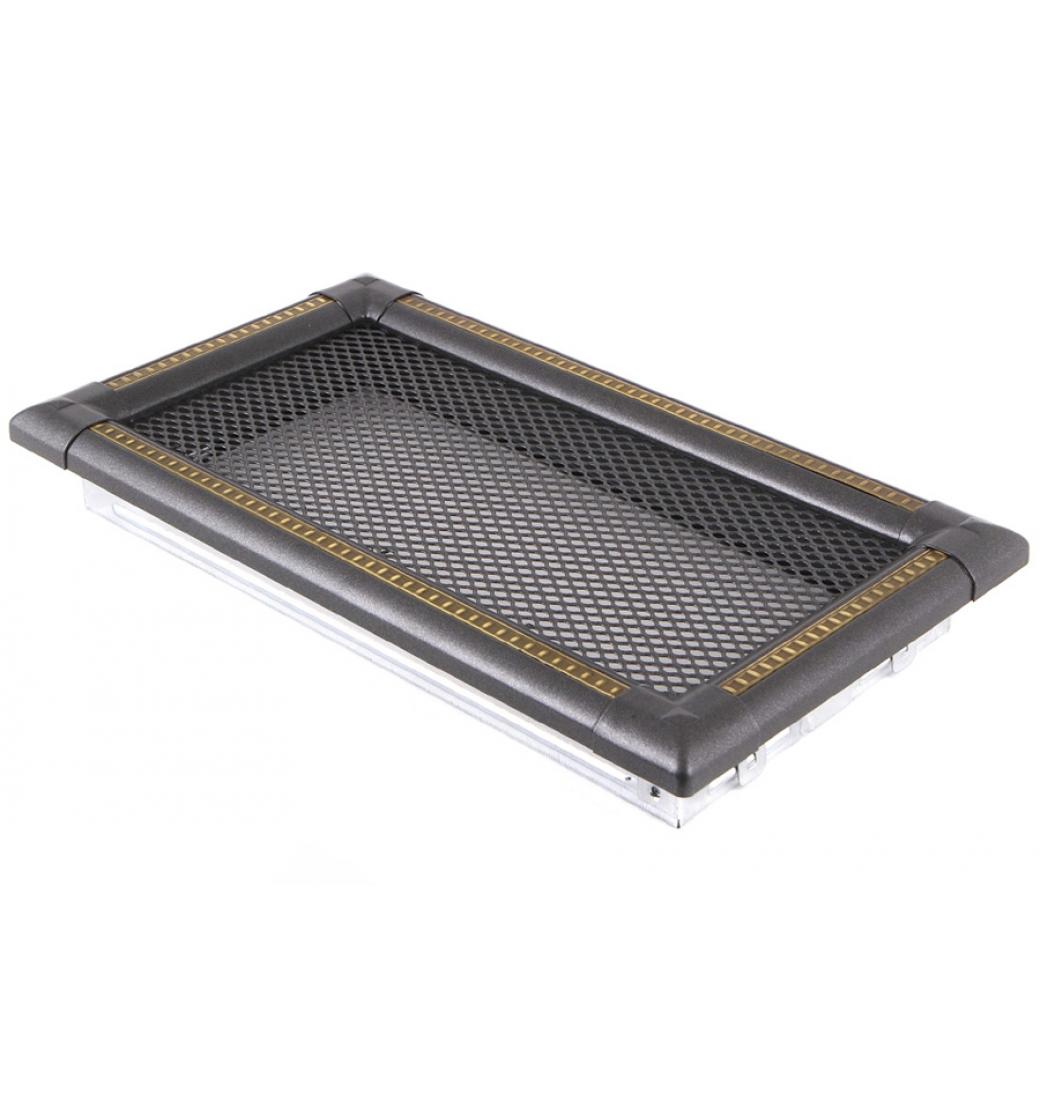 Ventilační mřížky různých rozměrů a v několika barvách. Ocelové s montážním rámečkem, lakované práškovou barvou vysoké kvality, která je odolná vůči vysokým teplotám. I po několikaletém provozu zachovává svůj původní lesk a odstín. Mřížky plní též funkci dekorační. Slouží ke clonění ventilačních otvorů. Jsou vyrobeny z ocelových částí a příslušně upraveny technologickým procesem. Tento typ mřížek je určen pro montáže do komínových sopouchů, stěn a podlah (nepoužívat na stropech).Krbové mřížky - hranaté