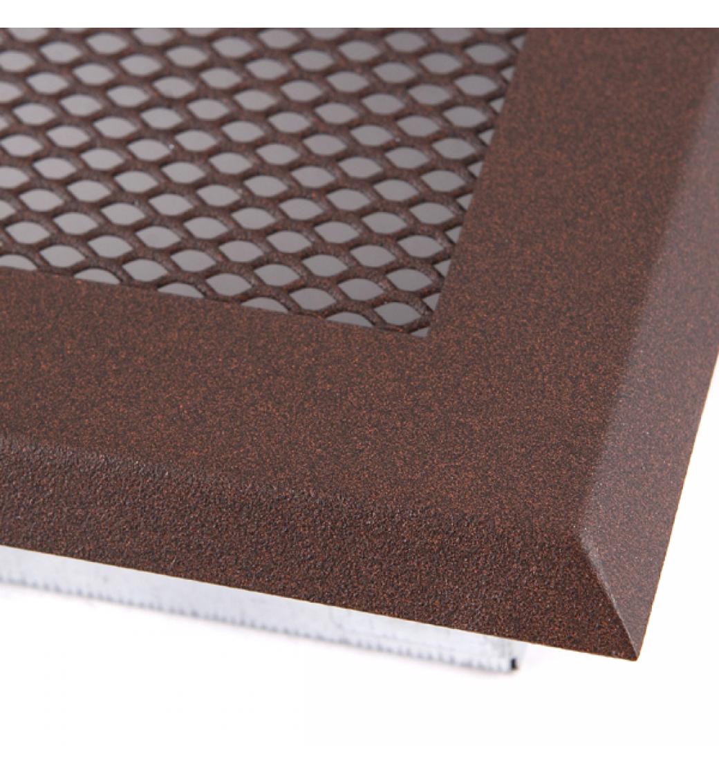 Ventilační mřížky různých rozměrů a v několika barvách. Ocelové s montážním rámečkem, lakované práškovou barvou vysoké kvality, která je odolná vůči vysokým teplotám. I po několikaletém provozu zachovává svůj původní lesk a odstín. Mřížky plní též funkci dekorační. Slouží ke clonění ventilačních otvorů. Jsou vyrobeny z ocelových částí a příslušně upraveny technologickým procesem. Tento typ mřížek je určen pro montáže do komínových sopouchů, stěn a podlah (nepoužívat na stropech).Krbové mřížky - hranaté