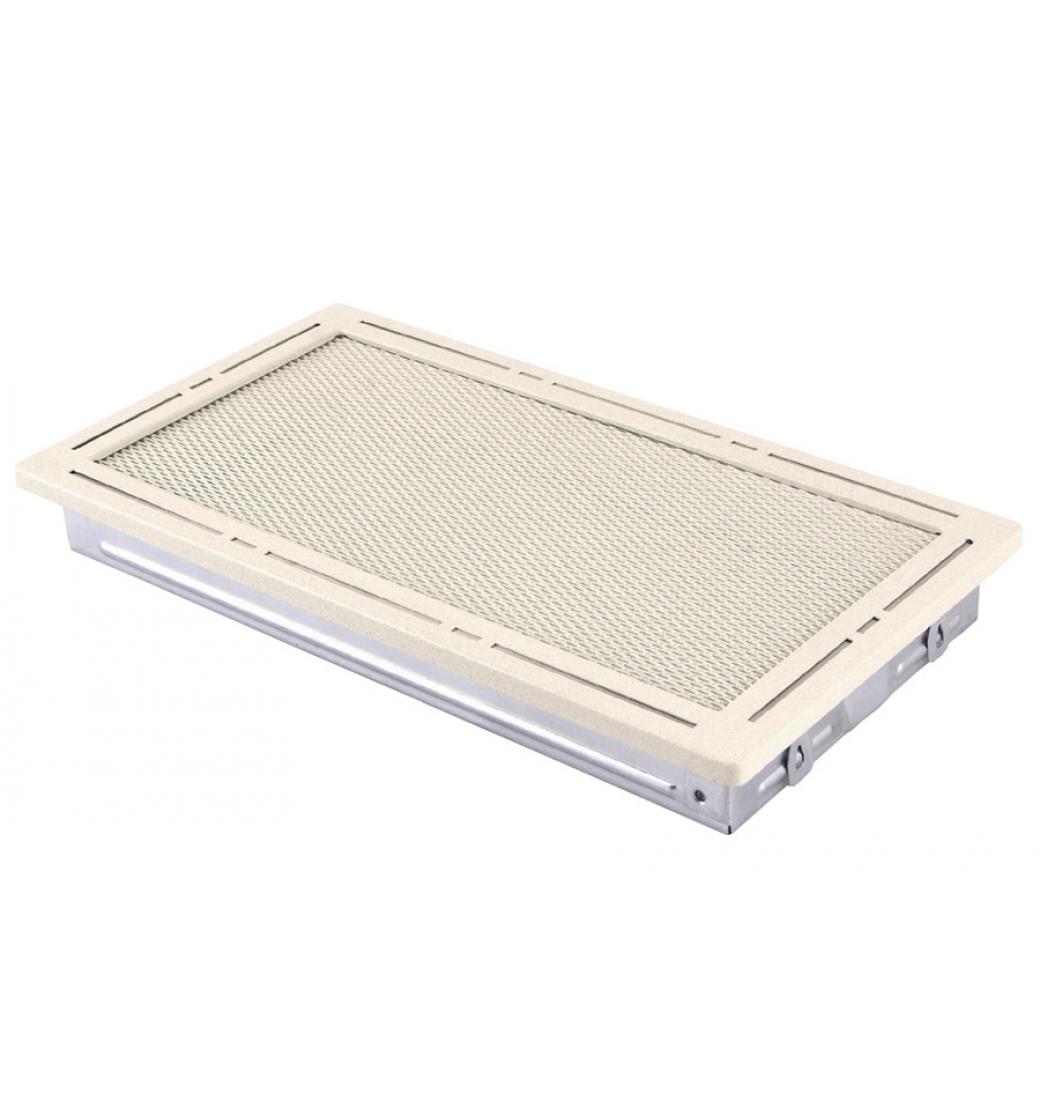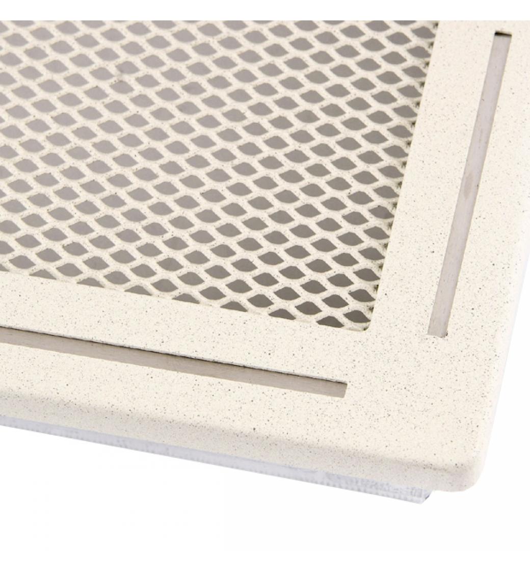 Ventilační mřížky různých rozměrů a v několika barvách. Ocelové s montážním rámečkem, lakované práškovou barvou vysoké kvality, která je odolná vůči vysokým teplotám. I po několikaletém provozu zachovává svůj původní lesk a odstín. Mřížky plní též funkci dekorační. Slouží ke clonění ventilačních otvorů. Jsou vyrobeny z ocelových částí a příslušně upraveny technologickým procesem. Tento typ mřížek je určen pro montáže do komínových sopouchů, stěn a podlah (nepoužívat na stropech).