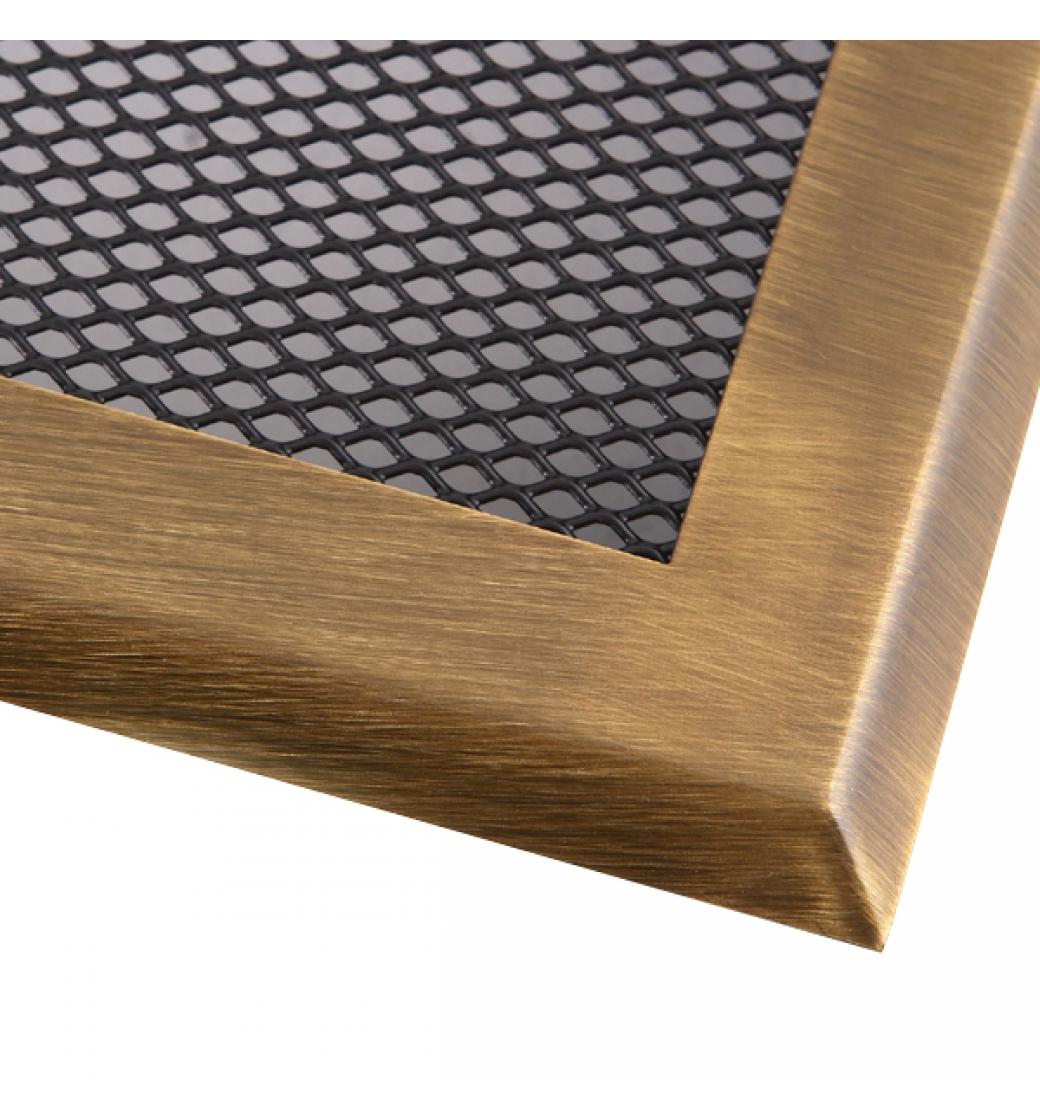 Ventilační mřížky různých rozměrů a v několika barvách. Ocelové s montážním rámečkem, lakované práškovou barvou vysoké kvality, která je odolná vůči vysokým teplotám. I po několikaletém provozu zachovává svůj původní lesk a odstín. Mřížky plní též funkci dekorační. Slouží ke clonění ventilačních otvorů. Jsou vyrobeny z ocelových částí a příslušně upraveny technologickým procesem. Tento typ mřížek je určen pro montáže do komínových sopouchů, stěn a podlah (nepoužívat na stropech).Krbové mřížky - hranaté