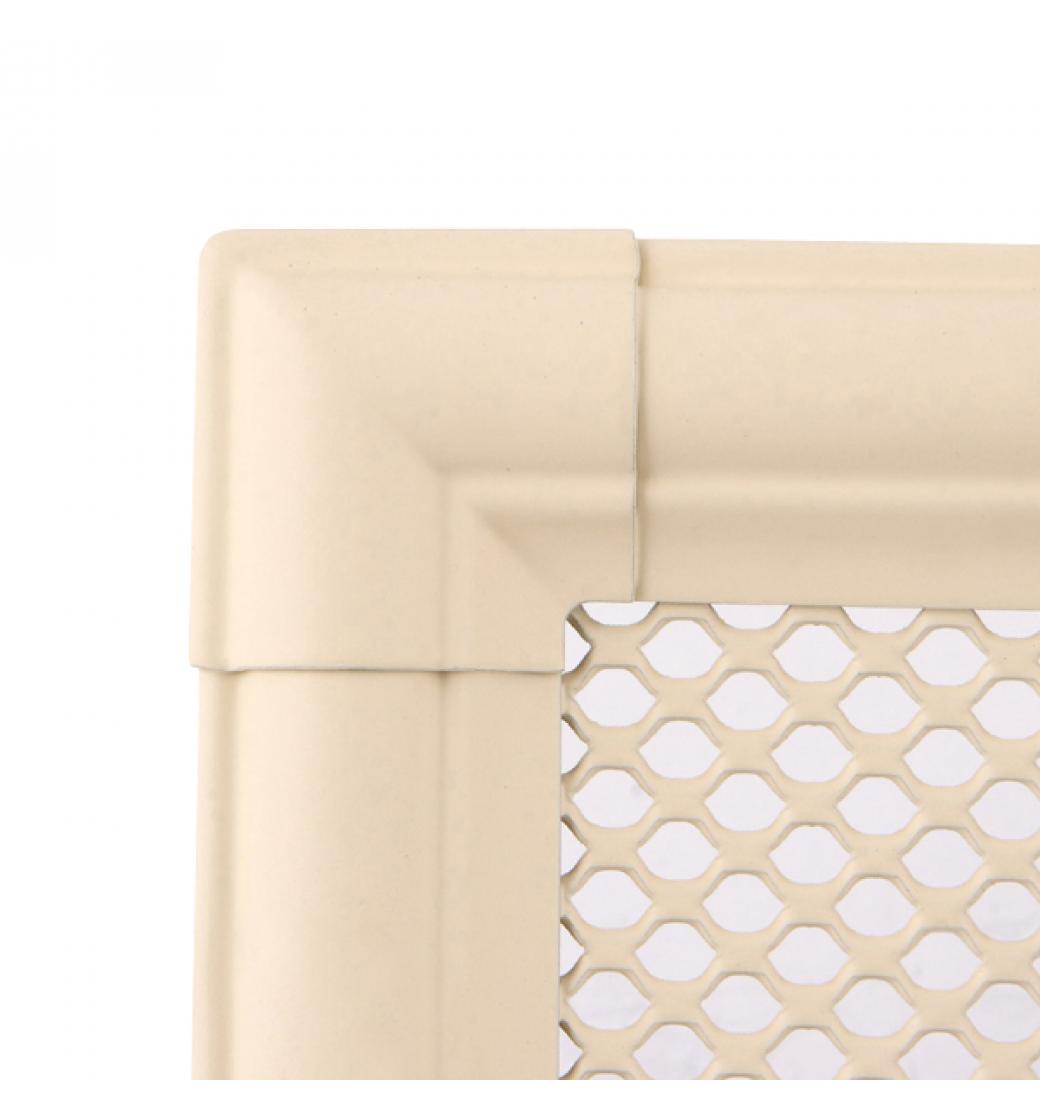 Ventilační mřížky různých rozměrů a v několika barvách. Ocelové s montážním rámečkem, lakované práškovou barvou vysoké kvality, která je odolná vůči vysokým teplotám. I po několikaletém provozu zachovává svůj původní lesk a odstín. Mřížky plní též funkci dekorační. Slouží ke clonění ventilačních otvorů. Jsou vyrobeny z ocelových částí a příslušně upraveny technologickým procesem. Tento typ mřížek je určen pro montáže do komínových sopouchů, stěn a podlah (nepoužívat na stropech).Krbové mřížky - hranaté
