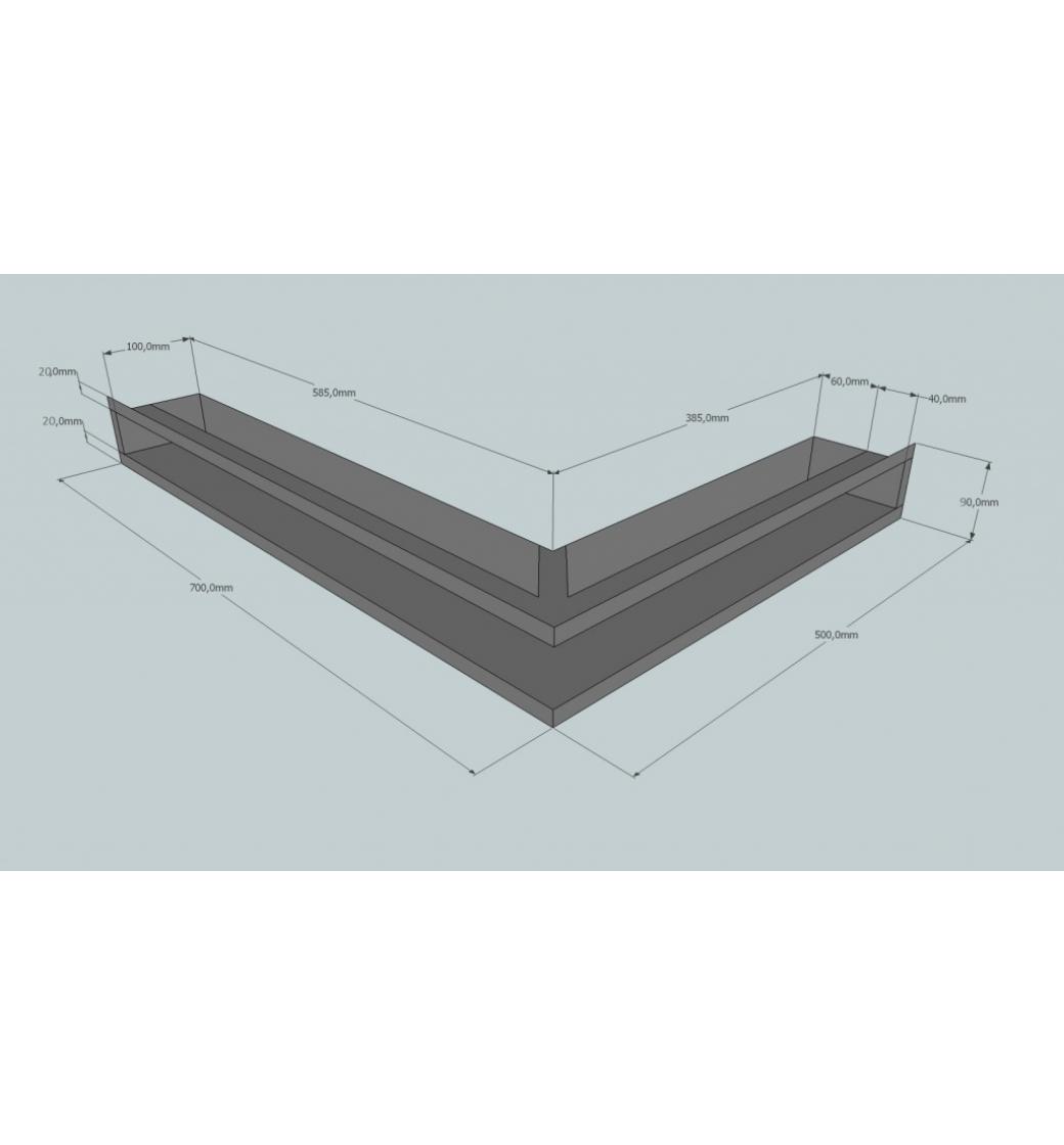 KRBOVÁ MŘÍŽKA OTEVŘENÁ ROHOVÁ 70X50X9 ANTRACIT HLOUBKA 10 CM
