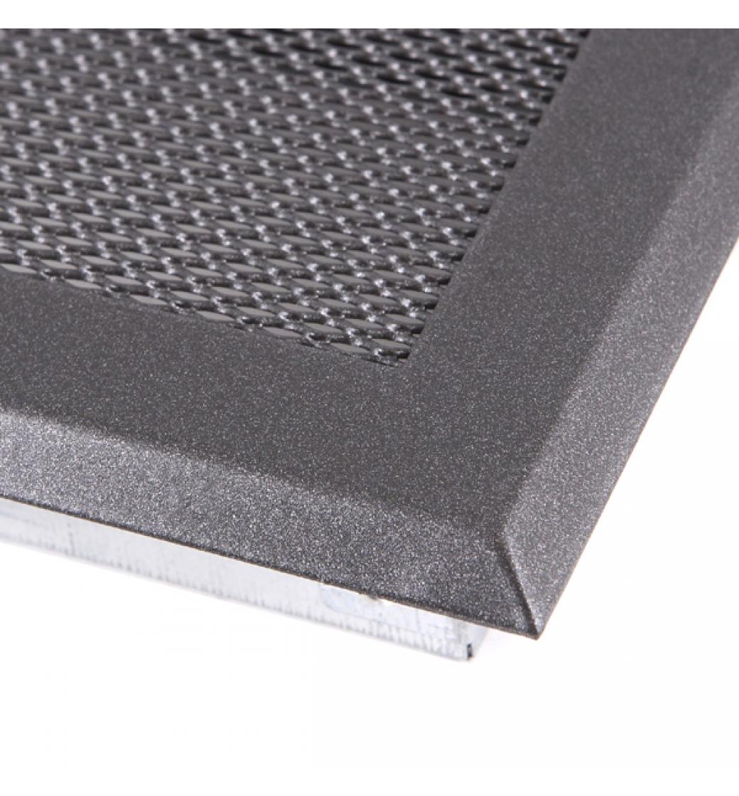 Ventilační mřížky různých rozměrů a v několika barvách. Ocelové s montážním rámečkem, lakované práškovou barvou vysoké kvality, která je odolná vůči vysokým teplotám. I po několikaletém provozu zachovává svůj původní lesk a odstín. Mřížky plní též funkci dekorační. Slouží ke clonění ventilačních otvorů. Jsou vyrobeny z ocelových částí a příslušně upraveny technologickým procesem. Tento typ mřížek je určen pro montáže do komínových sopouchů, stěn a podlah (nepoužívat na stropech).