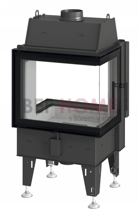 Průhledová krbová vložka, oboje dveře s otevíráním do strany - rohové (jednodílné ohýbané sklo)
