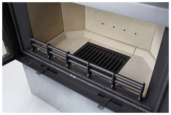 Krbová vložka Novara 17 s výměníkem zaujme velkými prosklenými dvířky. Ta mají barvu antracitu a ukrývají v sobě antireflexní sklo, které chrání ruce před popálením. Díky dvojitému prosklení probíhá spalování uvnitř při vyšších teplotách, sklo zůstává déle čisté, nečerná.