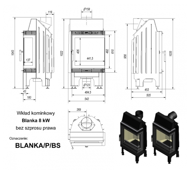 Krbová vložka KRATKI Blanka BS Pravá 8 kW