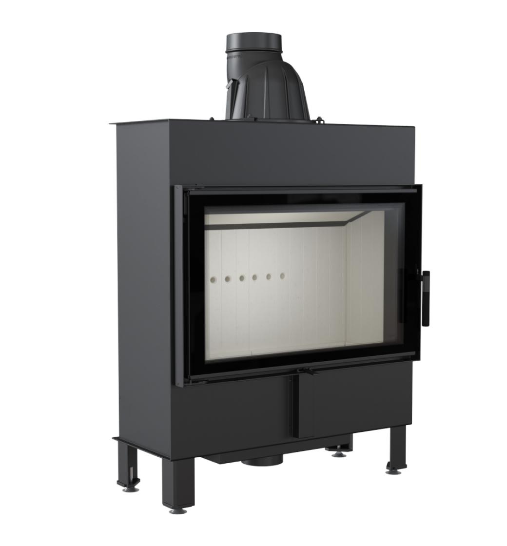 - Velkoplošné prosklení dvířek se žáruvzdorným dekorativním sklem