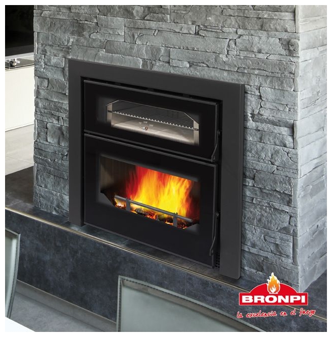 Vysoce kvalitní ocelová krbová vložka v rustikálním designu od španělského výrobce kamen a krbů Bronpi. Krbová vložka Bronpi Everest má v horní části zabudovanou troubu na pečení.
