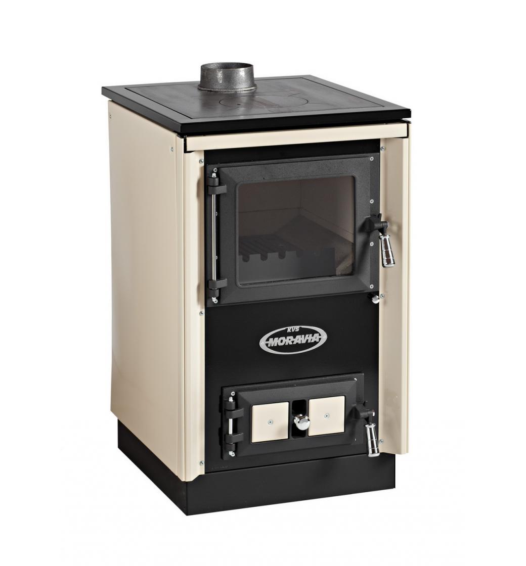 Kamna na pevná paliva KVS MORAVIA typ 9114 Sofie jsou určena k vytápění, vaření a ohřívání pokrmů. Rozměrné topeniště na palivové dřevo umožňuje použiti polen o délce do 350 mm a průměru do 230 mm.