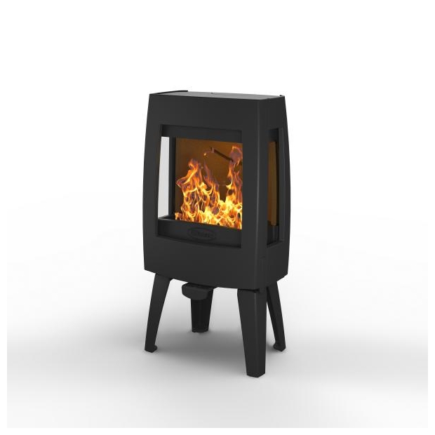 Oblíbený moderní atraktivní design s předním i bočním prosklením, podstavec kamen tvoří 4 nožky. Kamna mají nejmodernější systém úsporného a ekologického CB spalování - zplyňování spalin, systém oplachu skla horkým vzduchem. Do spalovací komory kamen proudí 3 spalovací vzduchu - primární vzduch jde zespodu pro prvotní spalování dřeva, sekundární vzduch proudí okolo topeniště a vychází horký shora na oplach skla, horký terciární vzduch je přiváděn soustavou trysek v zadní části topeniště a způsobuje druhotné zahoření nespálených částic a dřevoplynu.