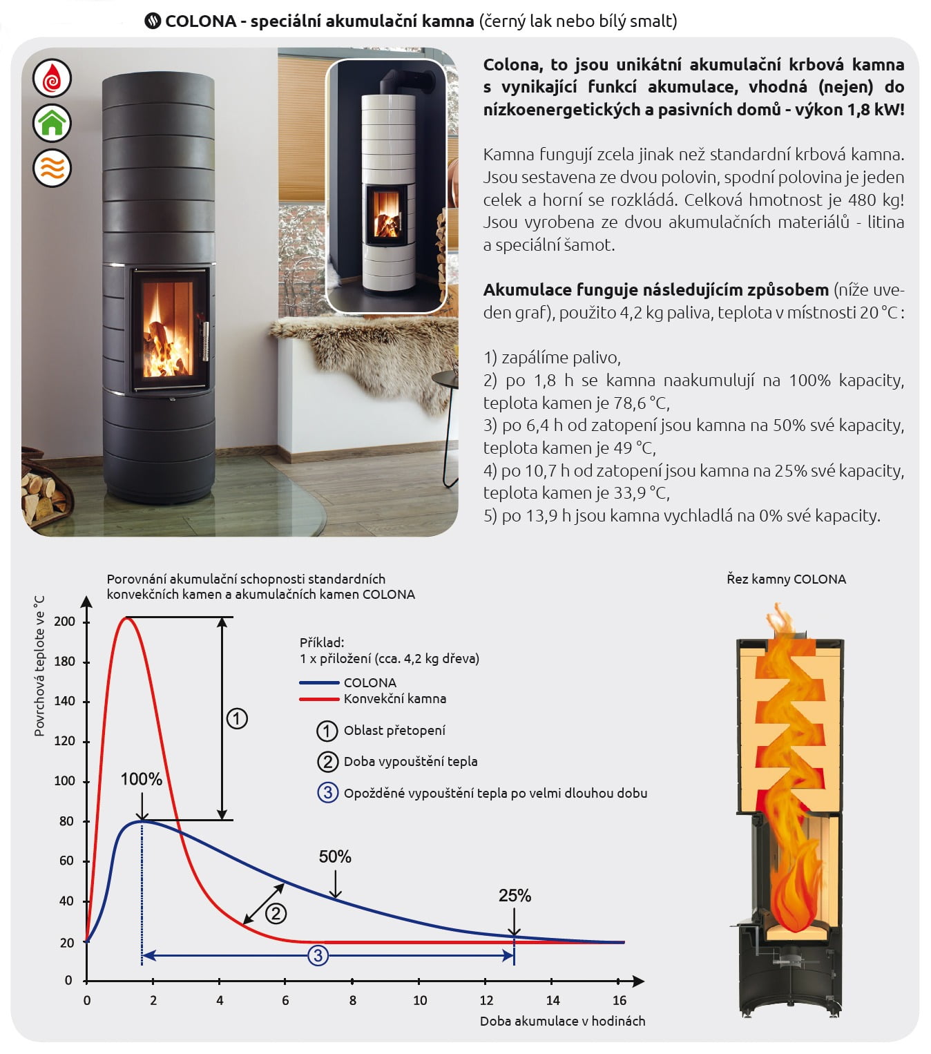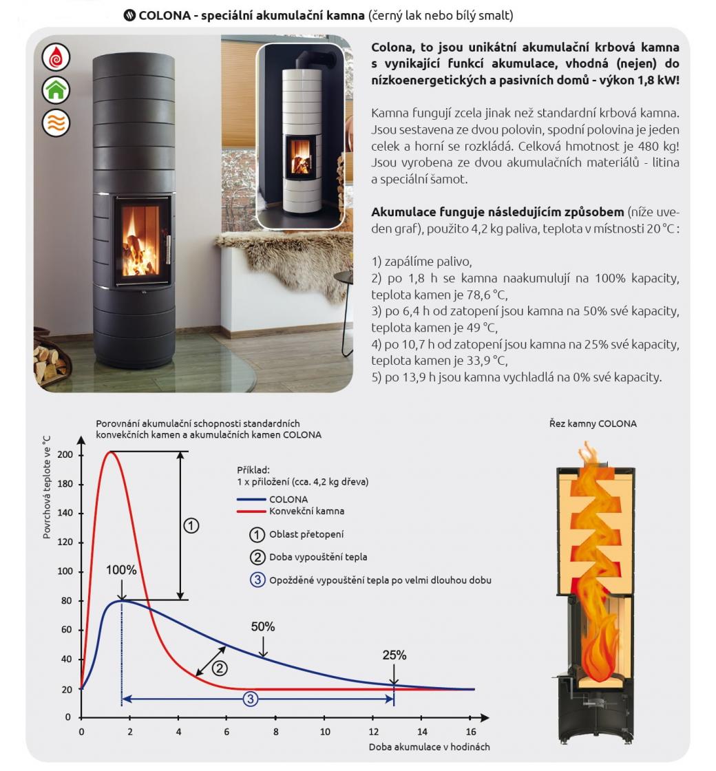 Colona to jsou unikátní akumulační krbová kamna s vynikající funkcí akumulace, vhodná do nízkoenergetických a pasivních domů - výkon 1,8 kW!