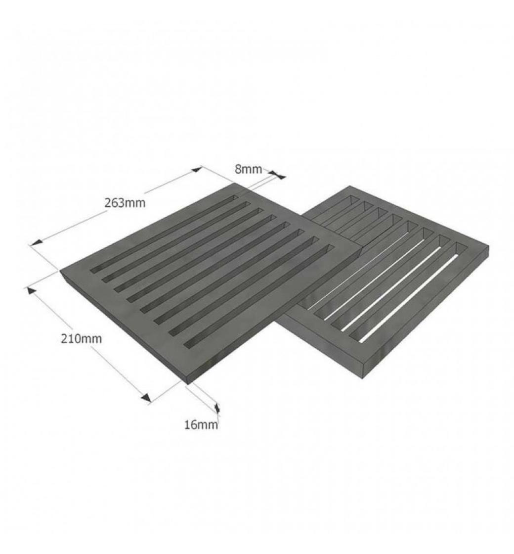 Masivní litinový plochý rošt. Tento kvalitní rošt se dá použít do všech topenišť kamen, krbů a grilů. Rošt je vyroben tradiční technologií - odlitek z šedé litiny do písku. Nabízíme Vám ucelenou řadu litinových roštů. Litinové rošty se používají také často přímo na grilování masa. Velmi oblíbené užití litinových roštu je při stavbě zahradních krbů a grilů.