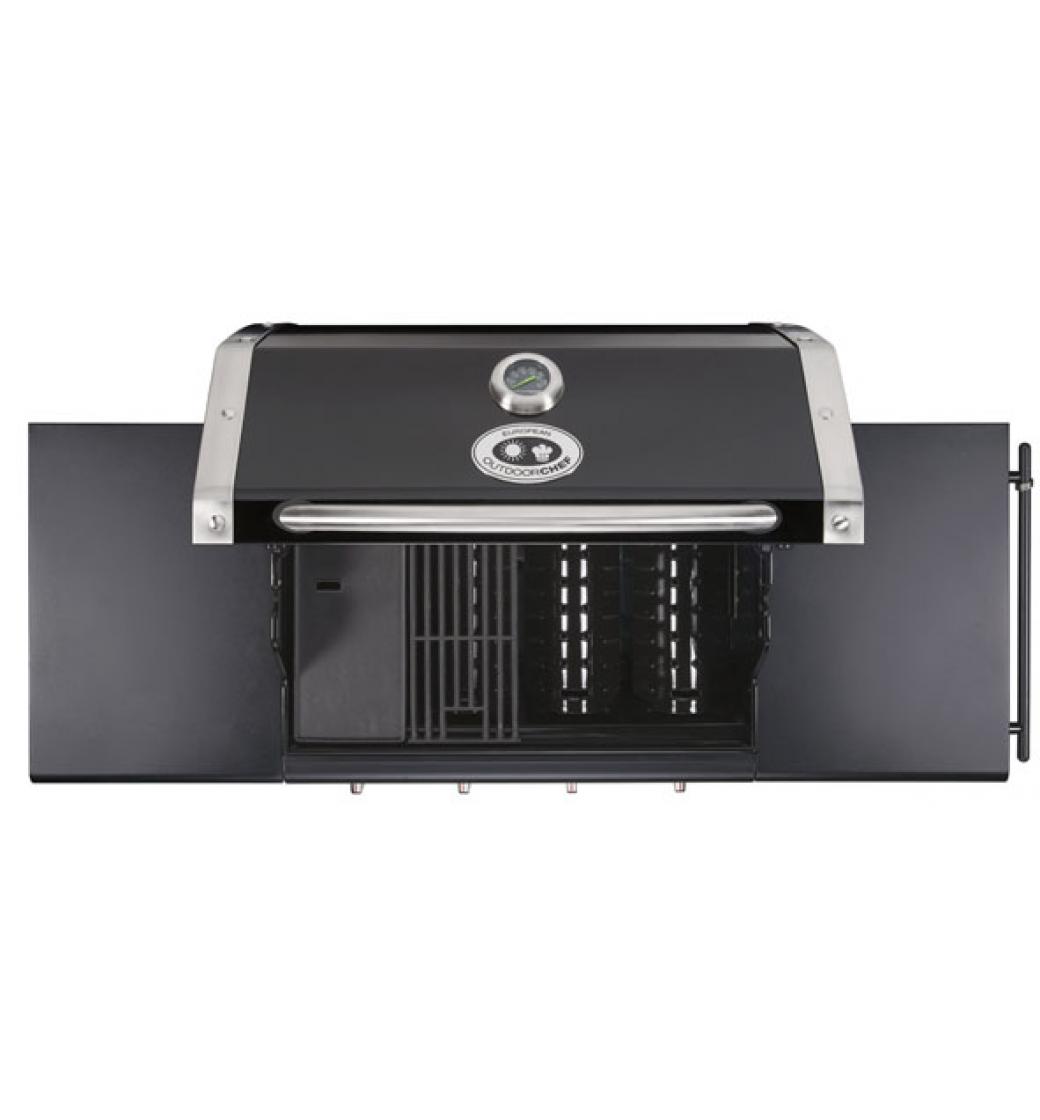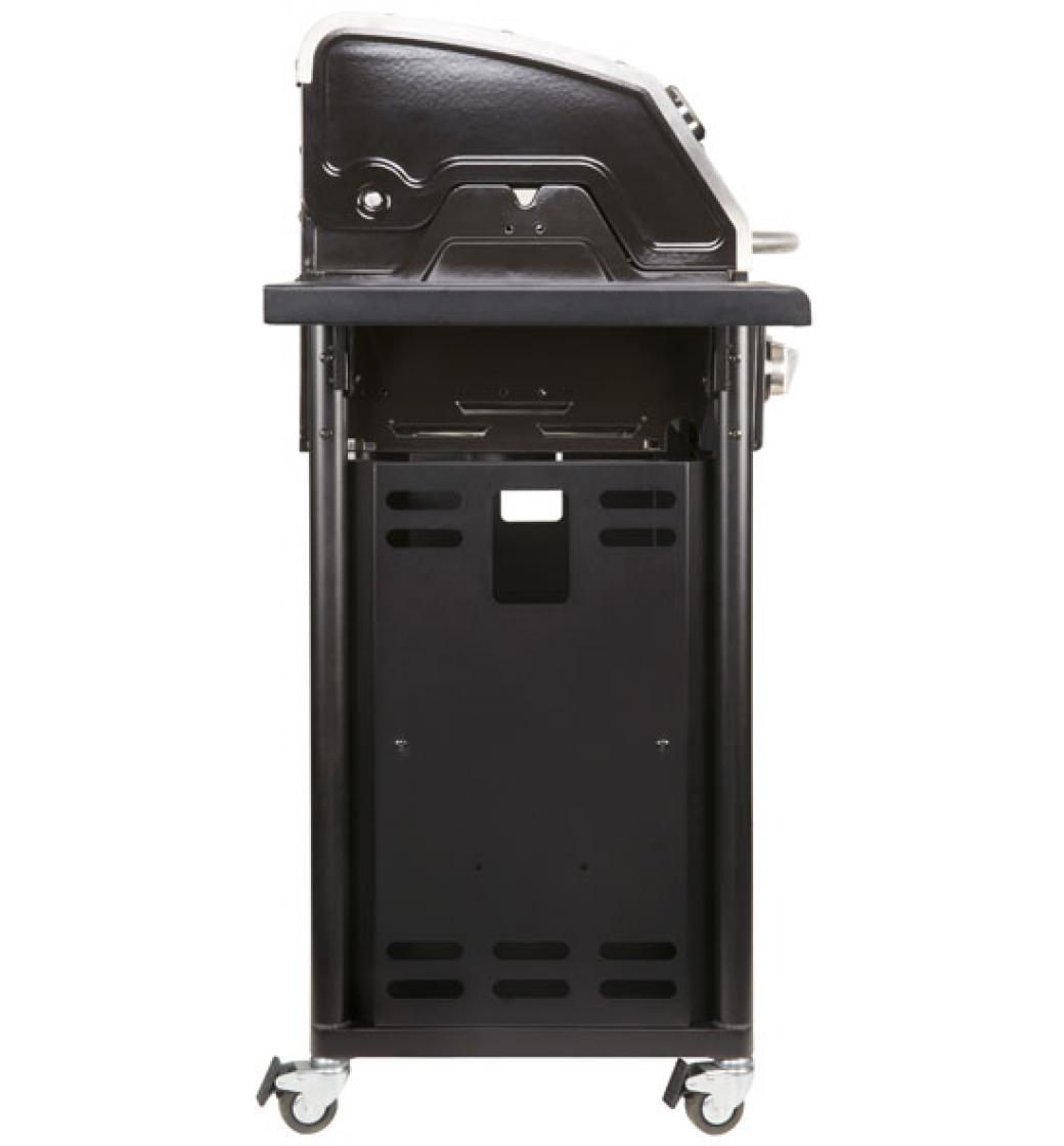 Na robustním, dobře ovladatelném podvozku je k dispozici velká pracovní plocha. Nezničitelné litinové hořáky akumulují teplo a rozkládají je rovnoměrně do grilovacích komor. Díky integrovanému teploměru lze teplotu kdykoliv zkontrolovat. Speciálně vyvinuté stříšky nad plamenem pak chrání grilované pokrmy před plameny vzniklými od odkapávající masti.