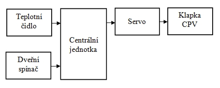 - 1 servomotor – klapka centrálního přívodu vzduchu zvuková signalizace