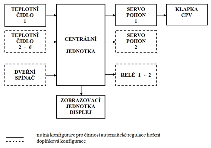 Regulace hoření spočívá v regulaci optimálního množství vzduchu do topeniště s cílem dosažení maximální účinnosti spalovacího procesu a nízkých emisních hodnot. Tato regulace probíhá ve 20 změnách pohybů klapky v celém průběhu hoření. Použití automatické regulace hoření uspoří cca 30% energie. Regulátor mj. obsahuje užitečnou funkci zvukové signalizace, která upozorňuje uživatele o vhodnosti přiložení paliva. Tato funkce je vypínatelná.