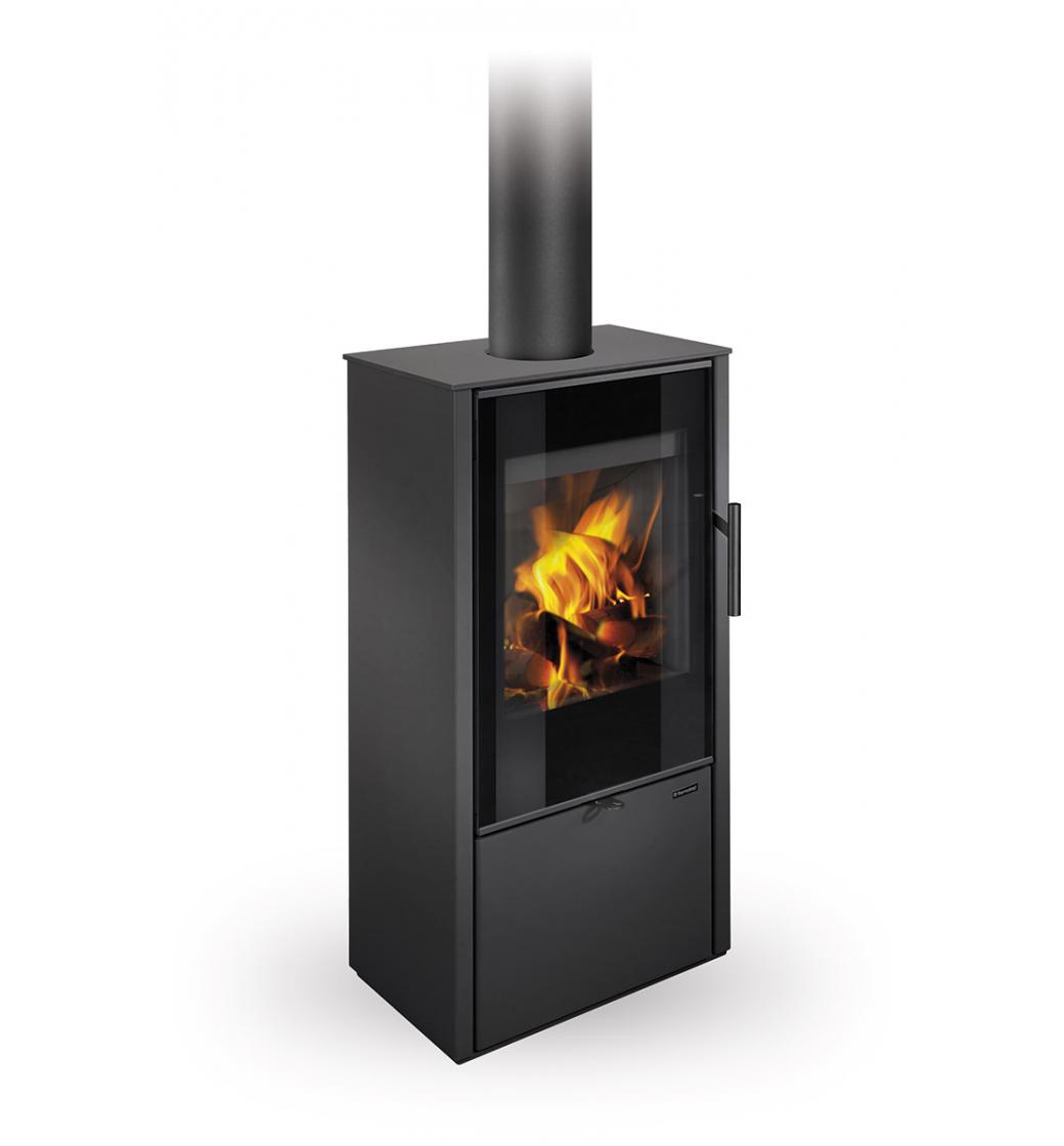 Dvířka mají velkoplošné designové prosklení a kamna disponují systémem CPV – centrální přívod externího vzduchu. Ve standardní výbavě lze využít horní nebo zadní odvod spalin. Sekundární přívod vzduchu udržuje sklo čisté a zabraňuje usazování nečistot.