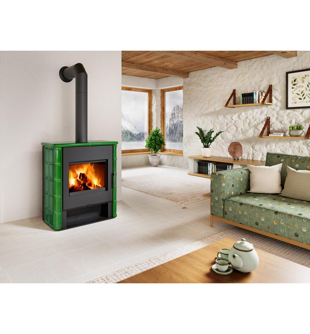 - Rustikální keramický obklad – luxusní vzhled a zvýšená akumulace tepla pro dlouhodobé sálání.
