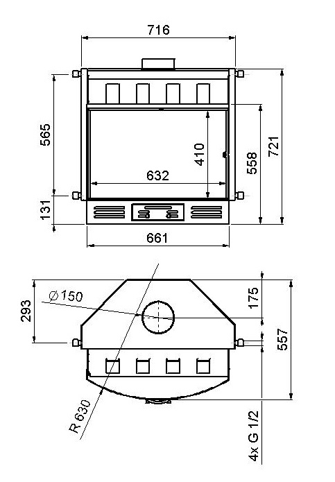 Krbová vložka teplovodní,objem vody v krbové vložce 22 l.
