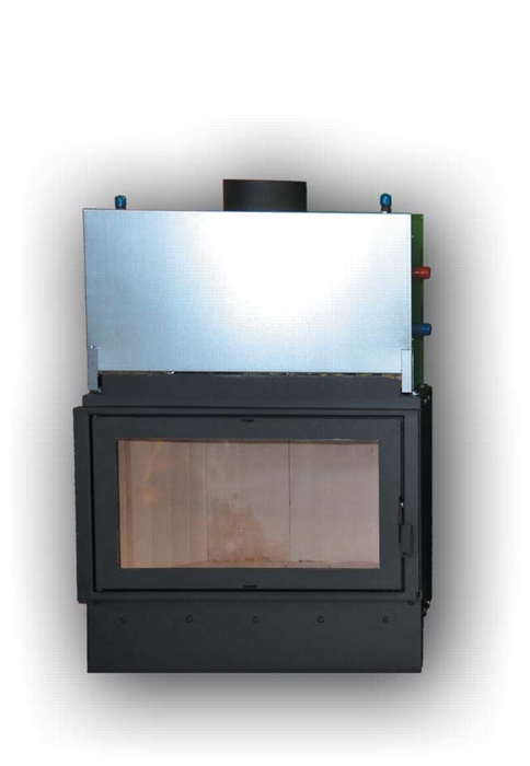 Teplovodní krbová vložka s topeništěm z litého žárobetonu, rovným prosklením a teplovodním výměníkem s vychlazovací smyčkou.Teplovodní krbová vložka Kretz B103 - V10