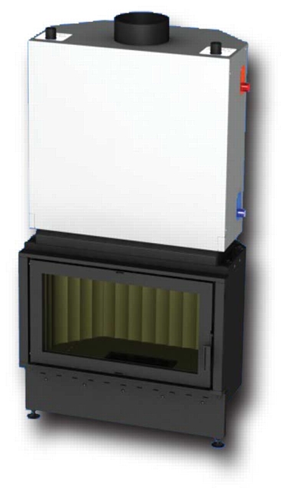 Teplovodní krbová vložka s topeništěm z litého žárobetonu, rovným prosklením a teplovodním výměníkem s vychlazovací smyčkou.Teplovodní krbová vložka Kretz B103 - V21