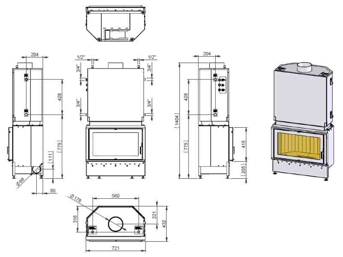Teplovodní krbová vložka Kretz B103 - V21