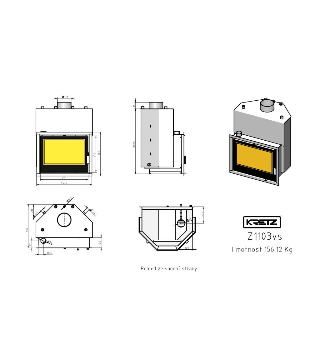 Teplovodní ocelová vložka KRETZ Z 1103 V s dvojitým sklem a šamotovým topeništěm.