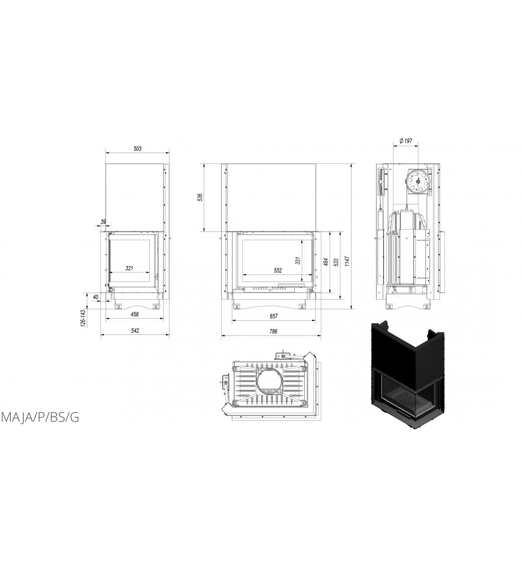Teplovzdušná krbová vložka Kratki Maja 8 BS pravá horní otevírání